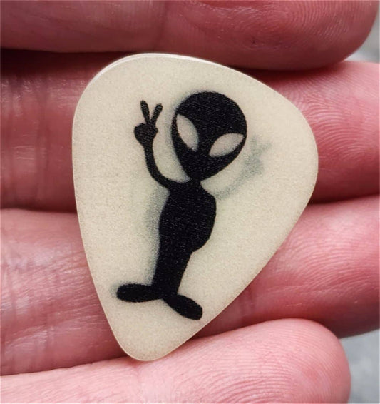 Glow in the Dark Alien Peace Sign Guitar Pick Pin or Tie Tac