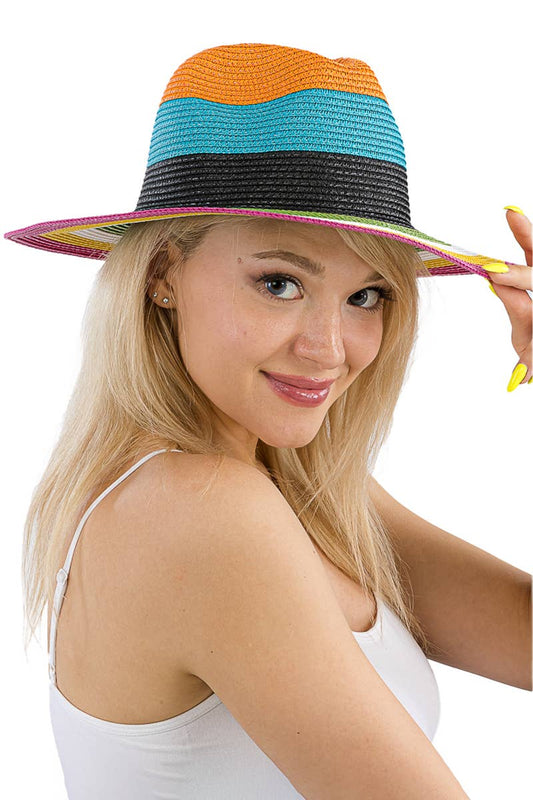 Multicolor Stripe Standard Brim Straw Rancher Hat