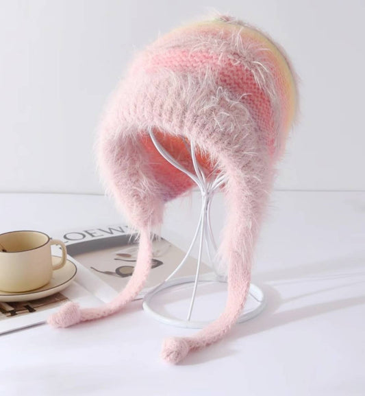 Slouchy Faux Mohair Knit Hat with Adjustable Front Tie