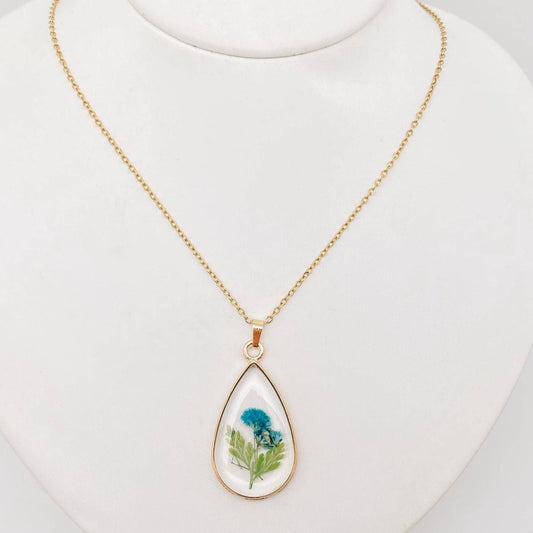 Baby’s Breath & Fern Pressed Dried Flower Teardrop Necklace