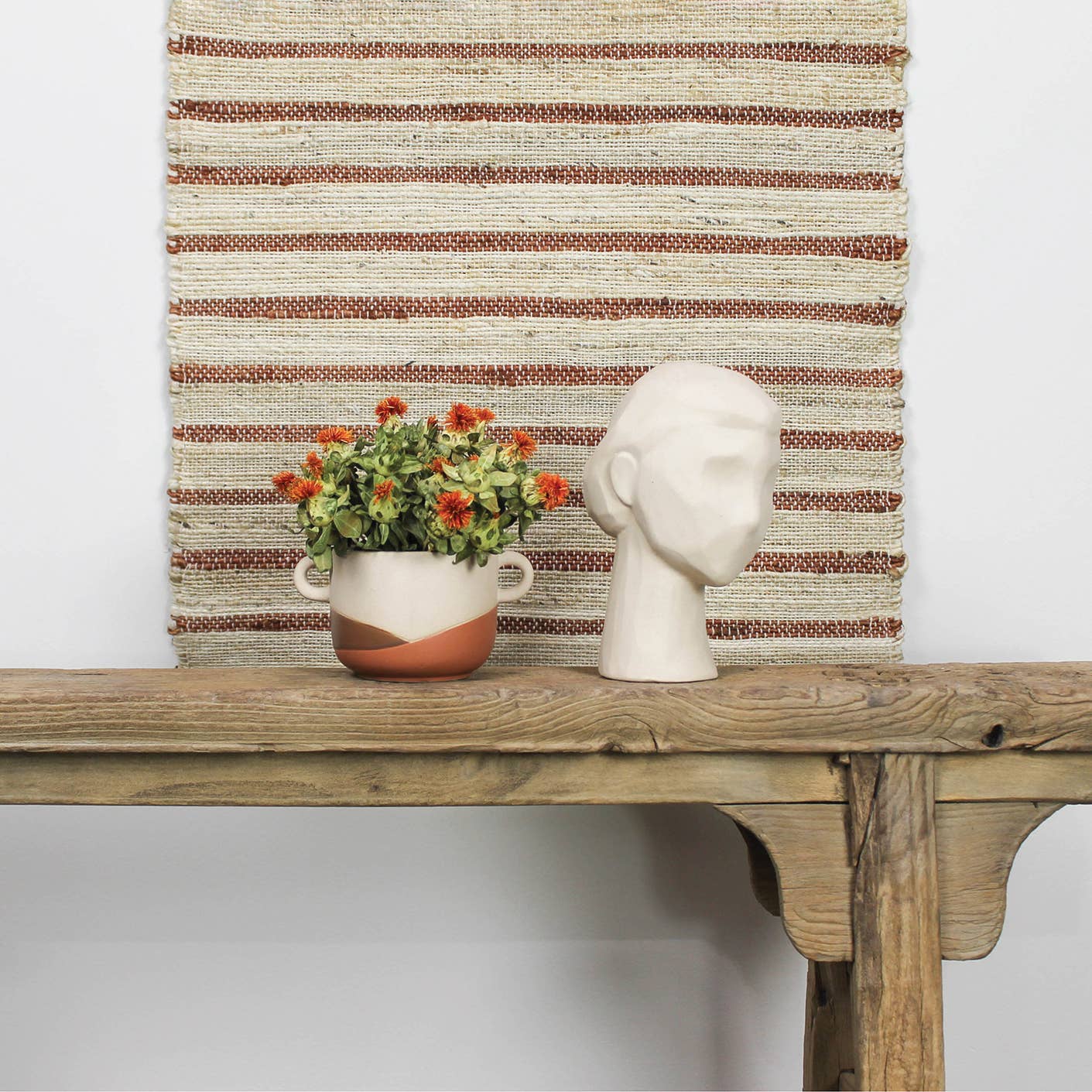 The chiseled artistic features of this ceramic bust in natural stoneware lends a beautiful pose and mindful expression to any bookshelf or sideboard.