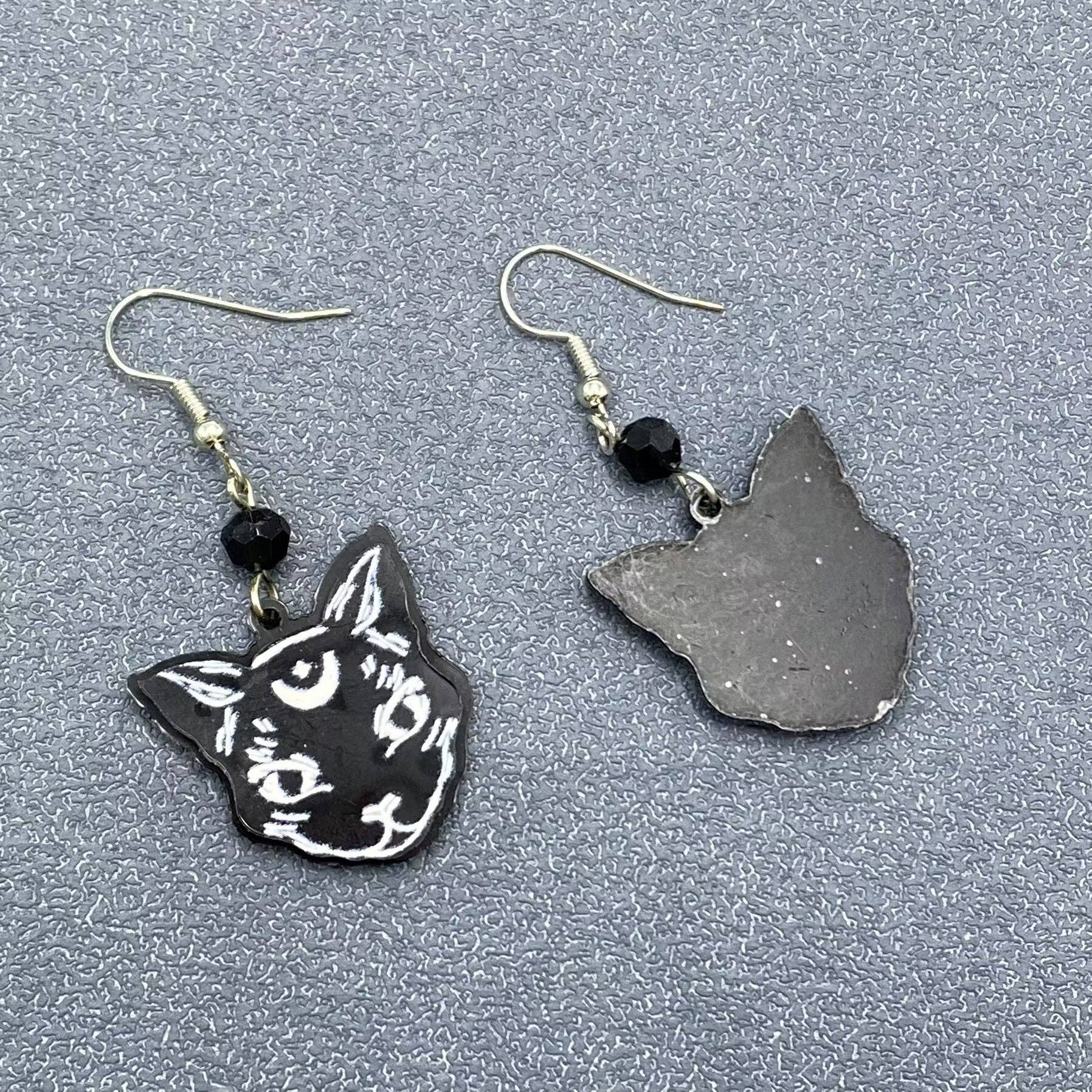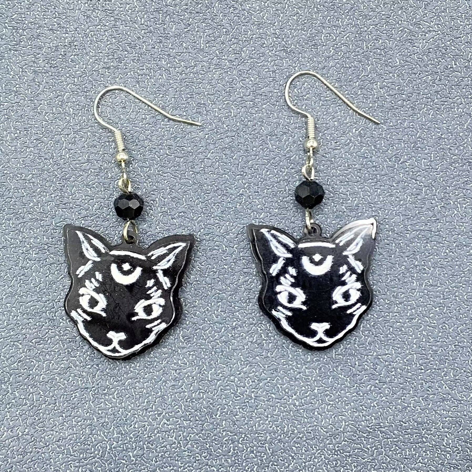 Black Moon Cat Earrings