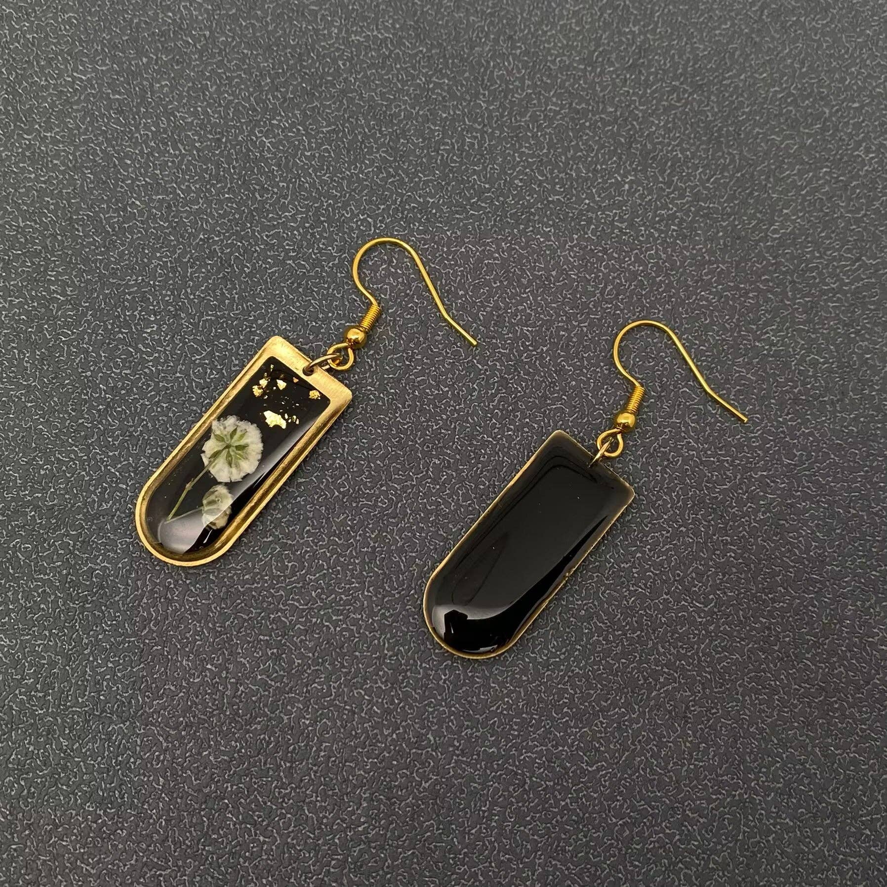 Dried Flowers Geometric Black Dangle Earrings