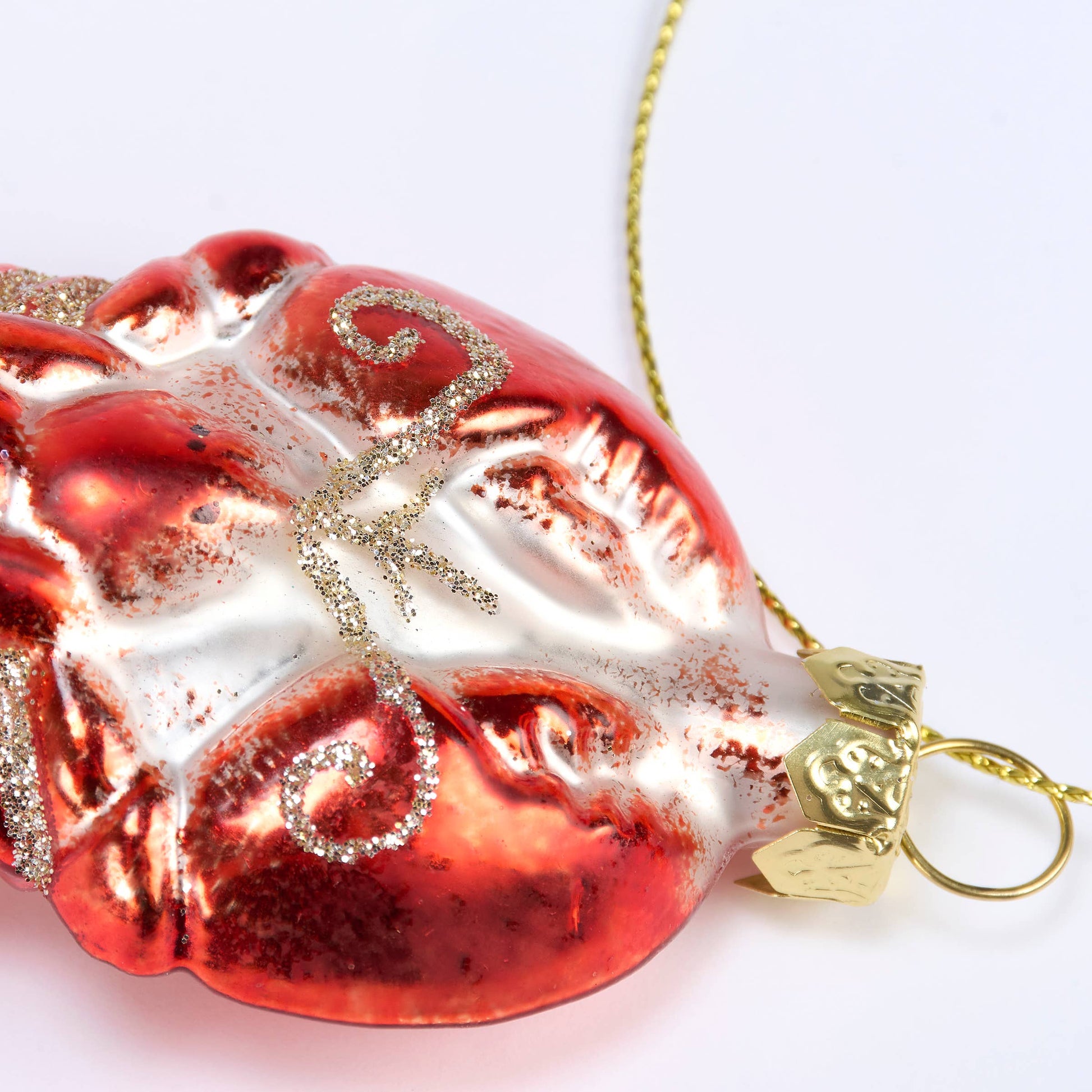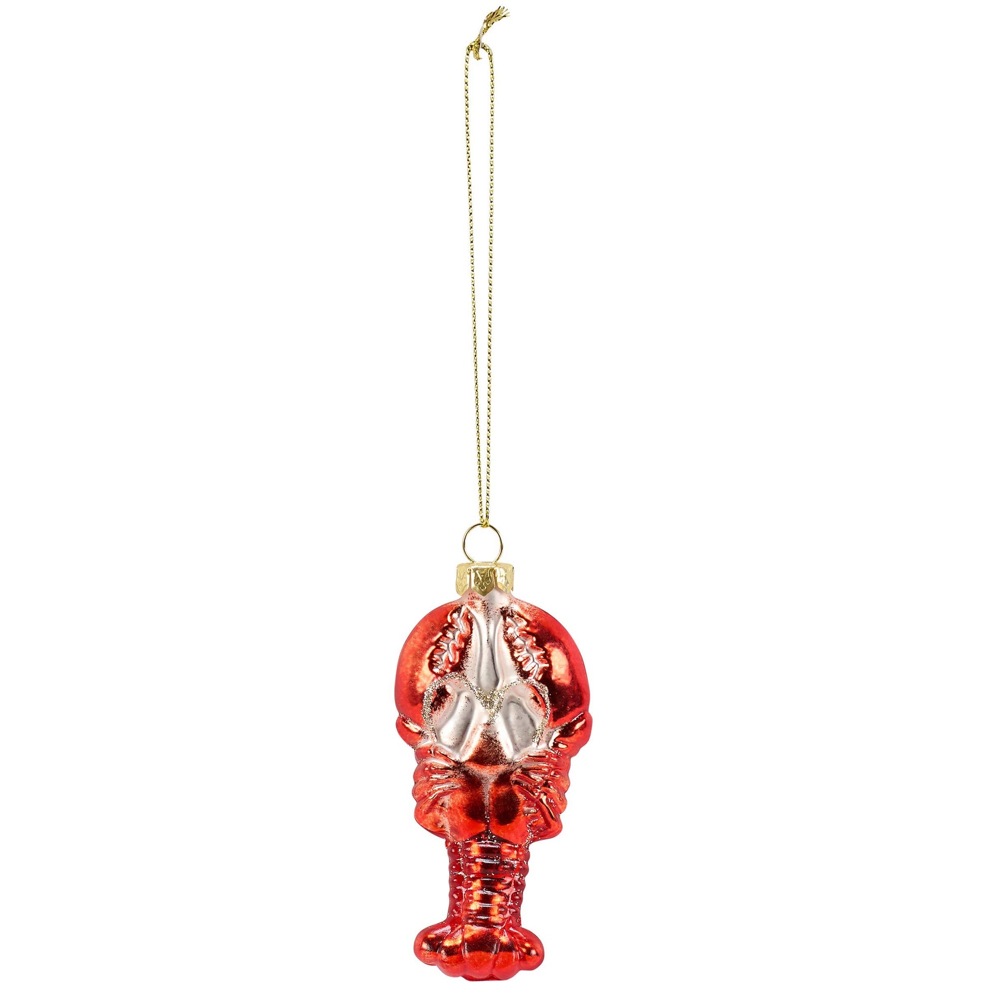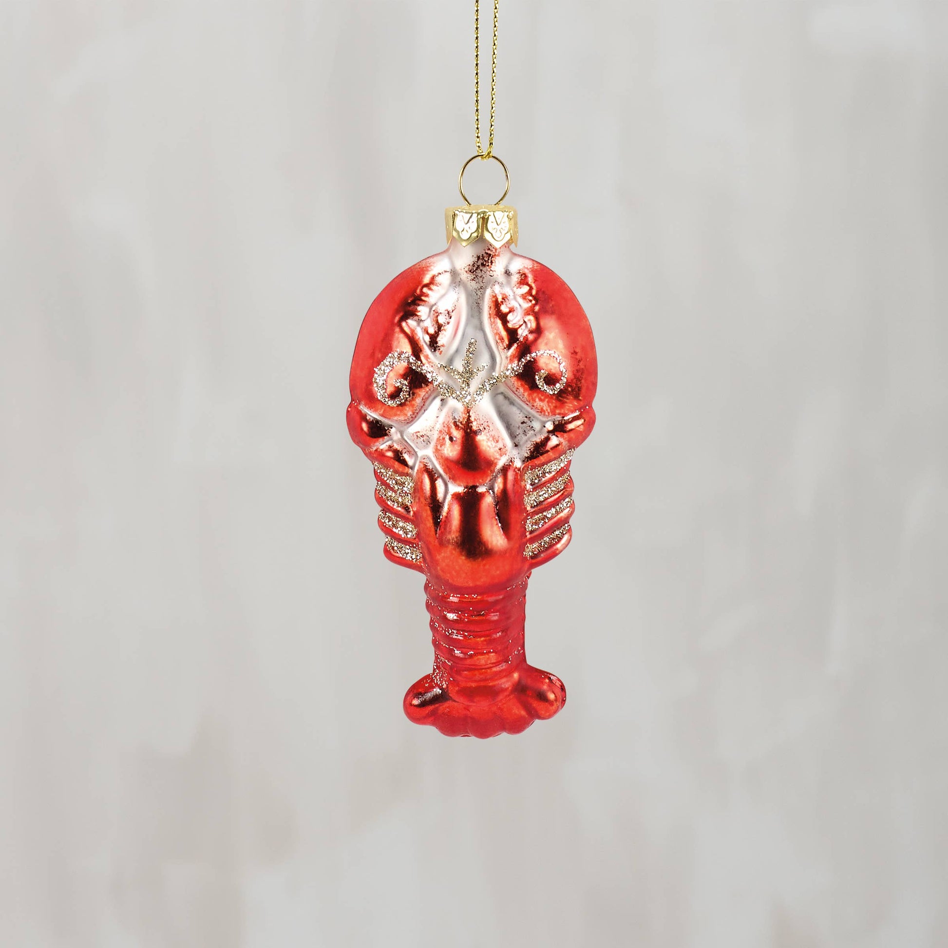 A glass ornament from our Beach Collection displaying a coastal inspired design of a lobster with glitter accents and painted details. Our glass Lobster ornament is ready to hang for display via the included top loop. A vintage style gift perfect for adding personality to a Christmas tree or for everyday beach-themed displays.