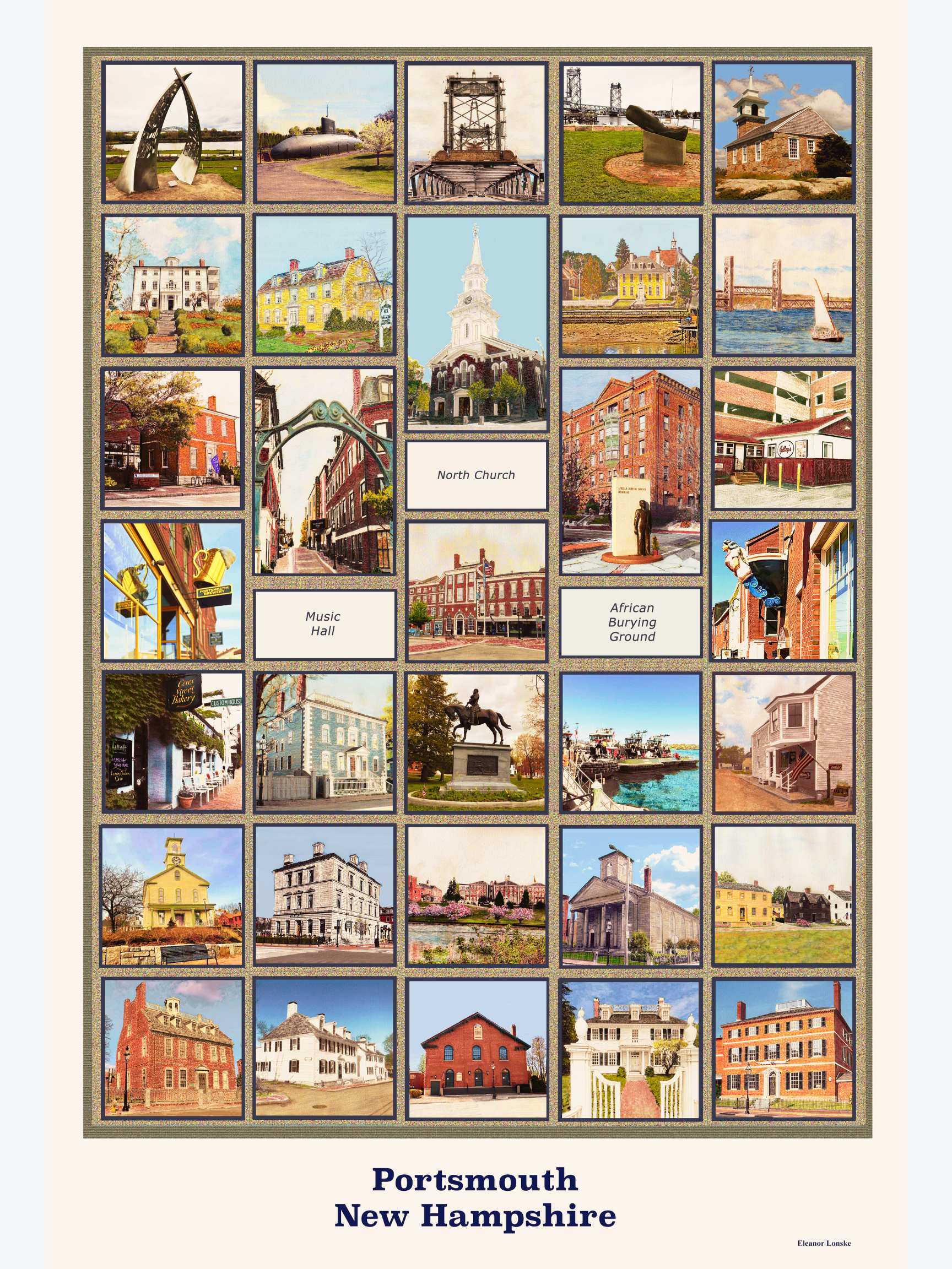 A wonderful treasure of some wonderful sights in Portsmouth. This photo collection was done by Eleanor Lohske. Size is 8 by 10 and is framed and ready to hang!