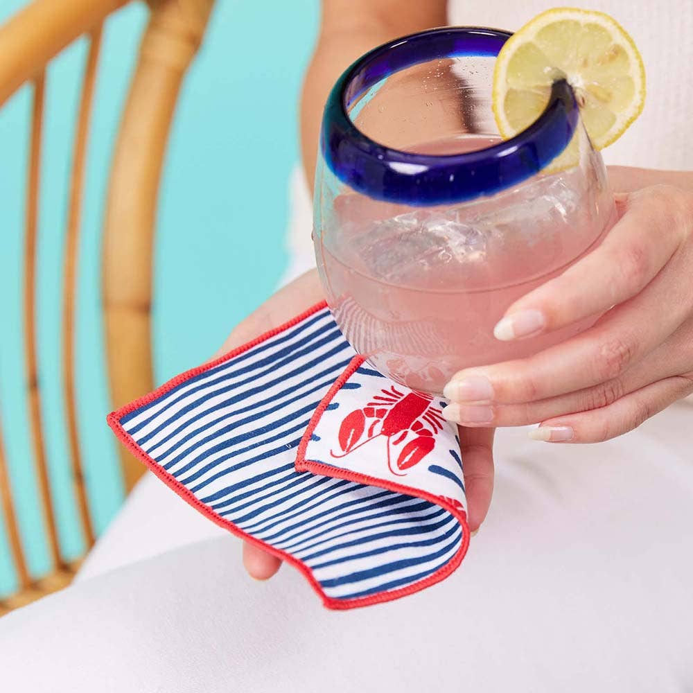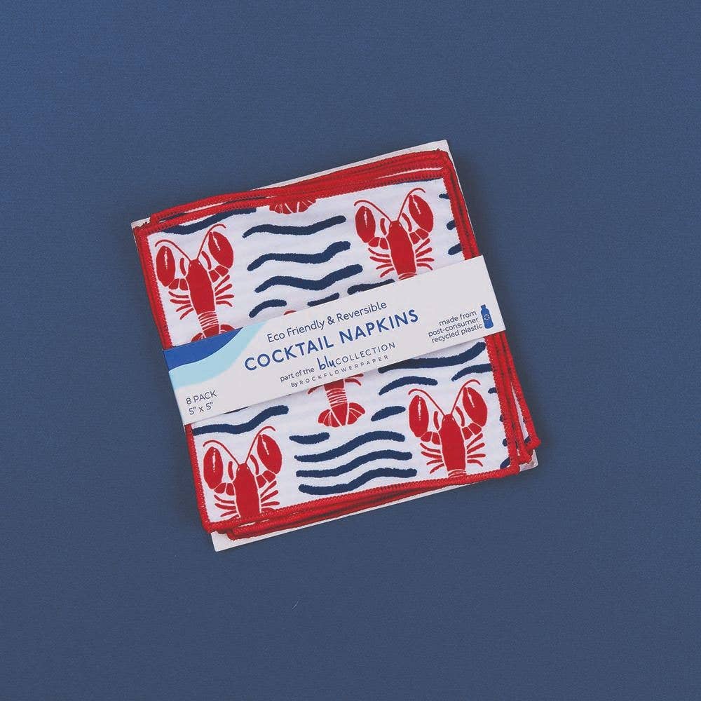 LOBSTER WAVES Reusable Eco Cocktail Napkins, set of 8