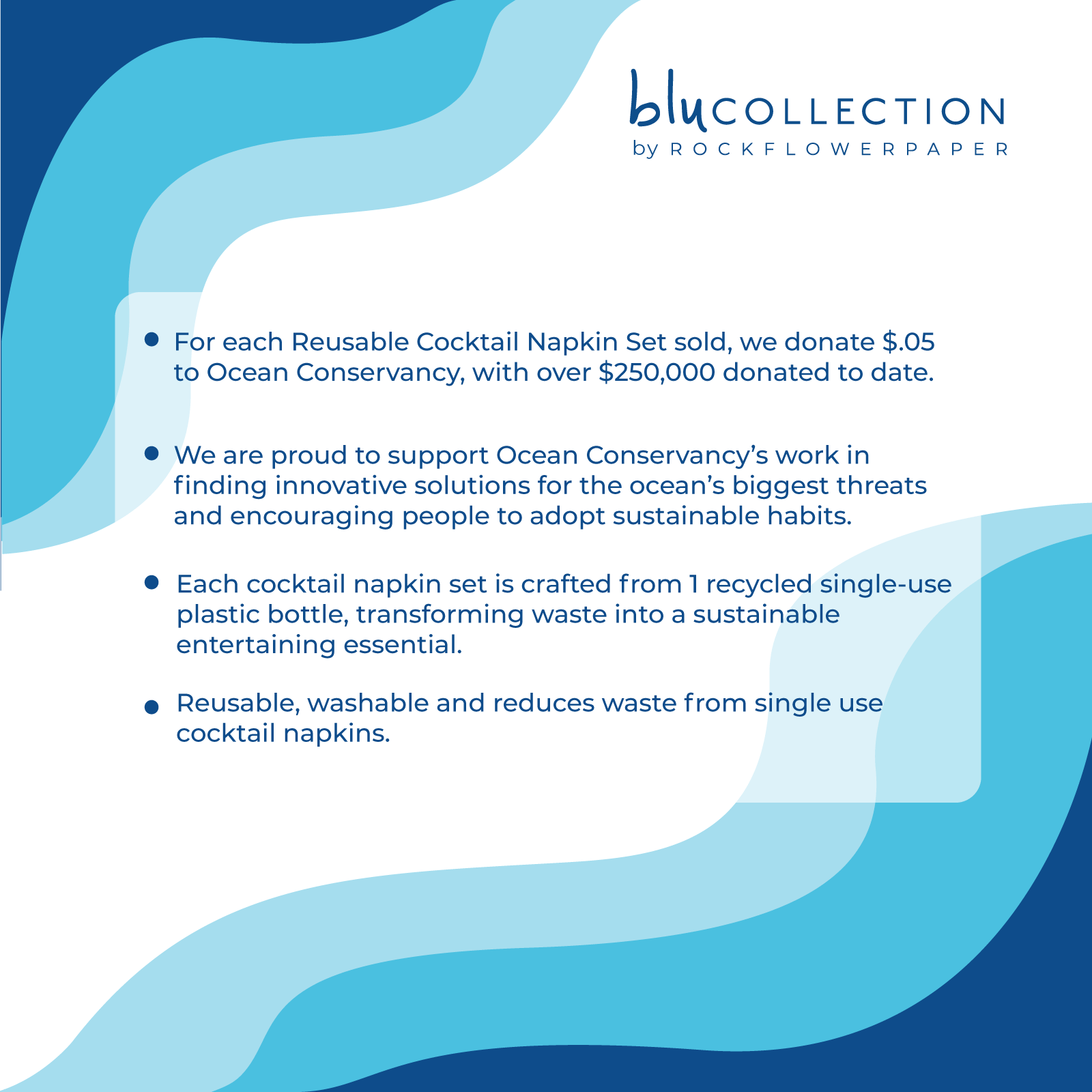 Part of our sustainable Blu Collection benefiting Ocean Conservancy. We donate 5 cents for every set sold.