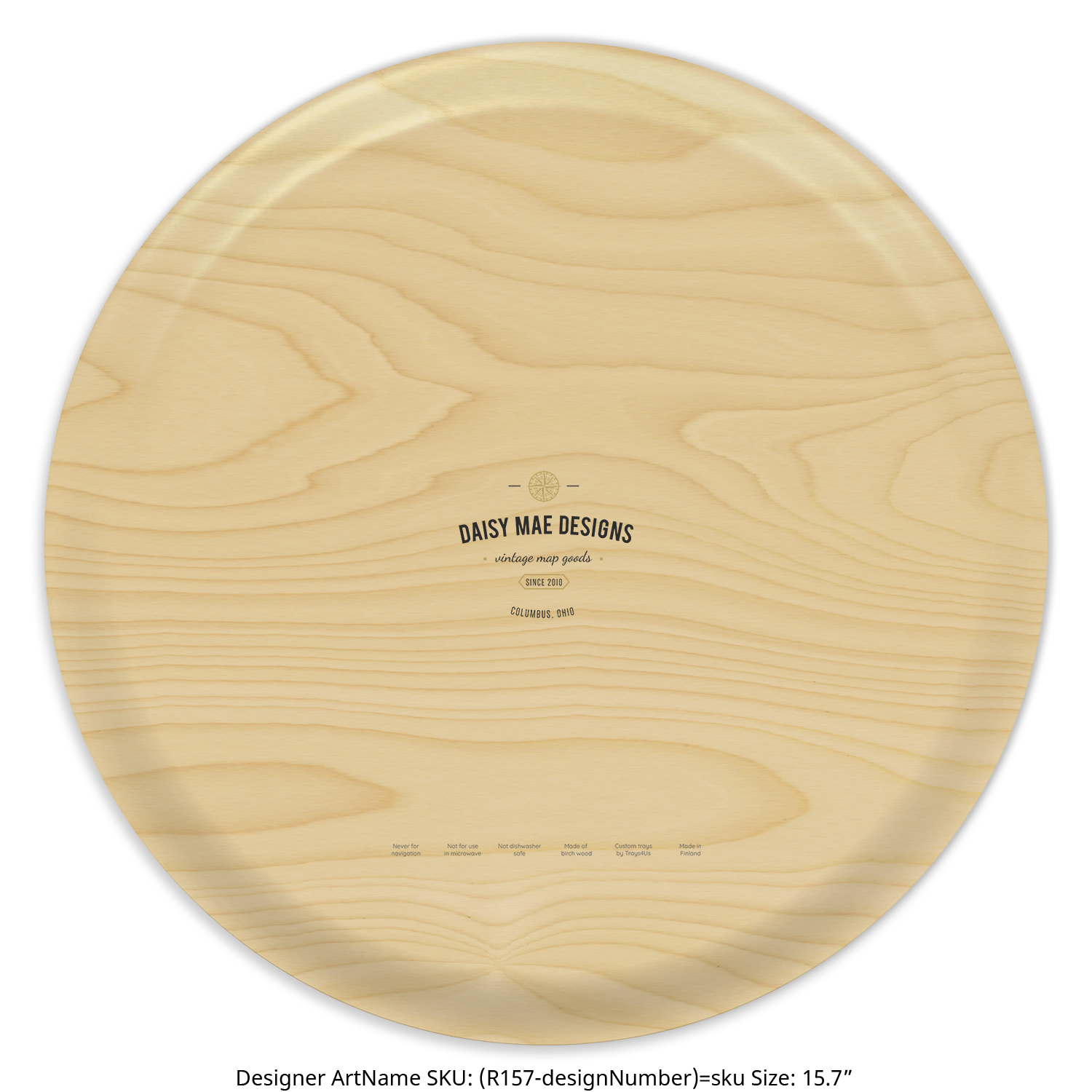 Add a touch of local charm to your store’s collection with this exclusive vintage map tray. This tray is perfect for customers seeking a unique, regionally inspired gift or home accent. Round 15.7" Crafted in Finland from FSC-certified birch wood, each tray is finished with a matte layer of melamine, ensuring both quality and durability. Customers will appreciate its eco-friendly credentials and finely crafted details. Designed for hand-washing only. Food safe. Not suitable for dishwasher or microwave use