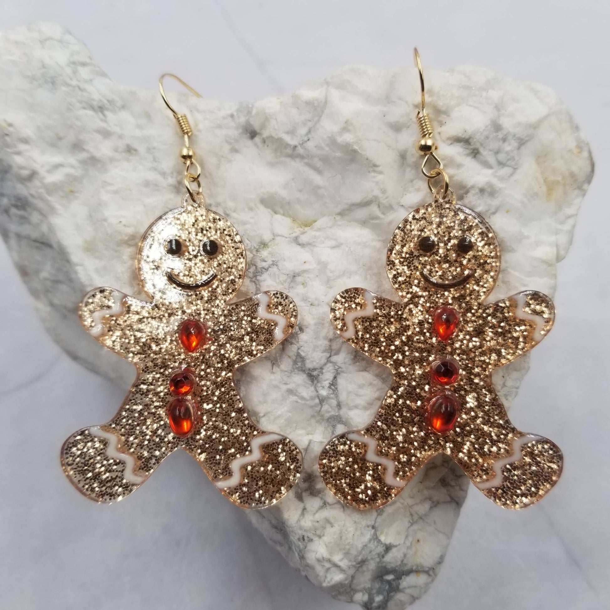 Sparkle Gingerbread Acrylic Christmas Earrings