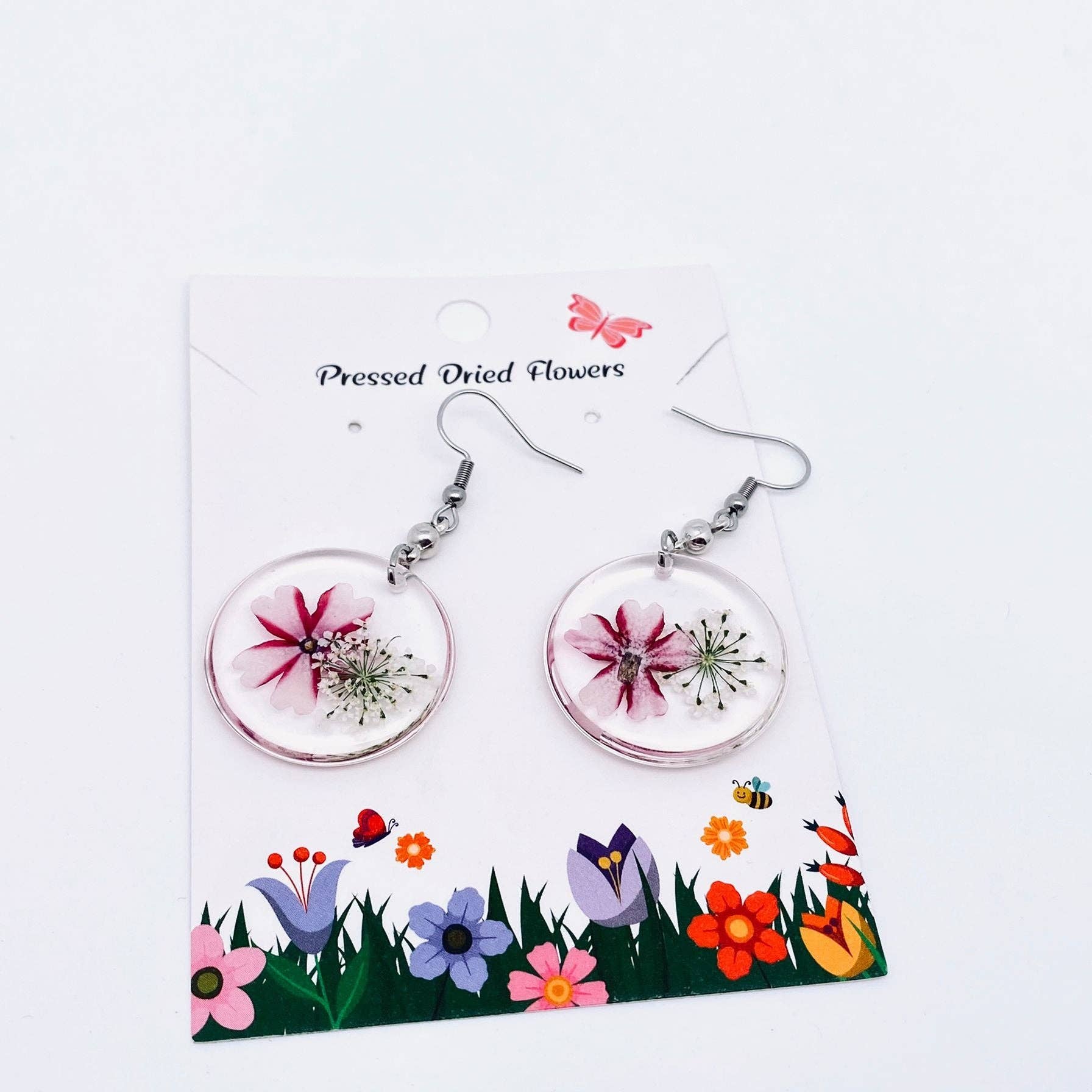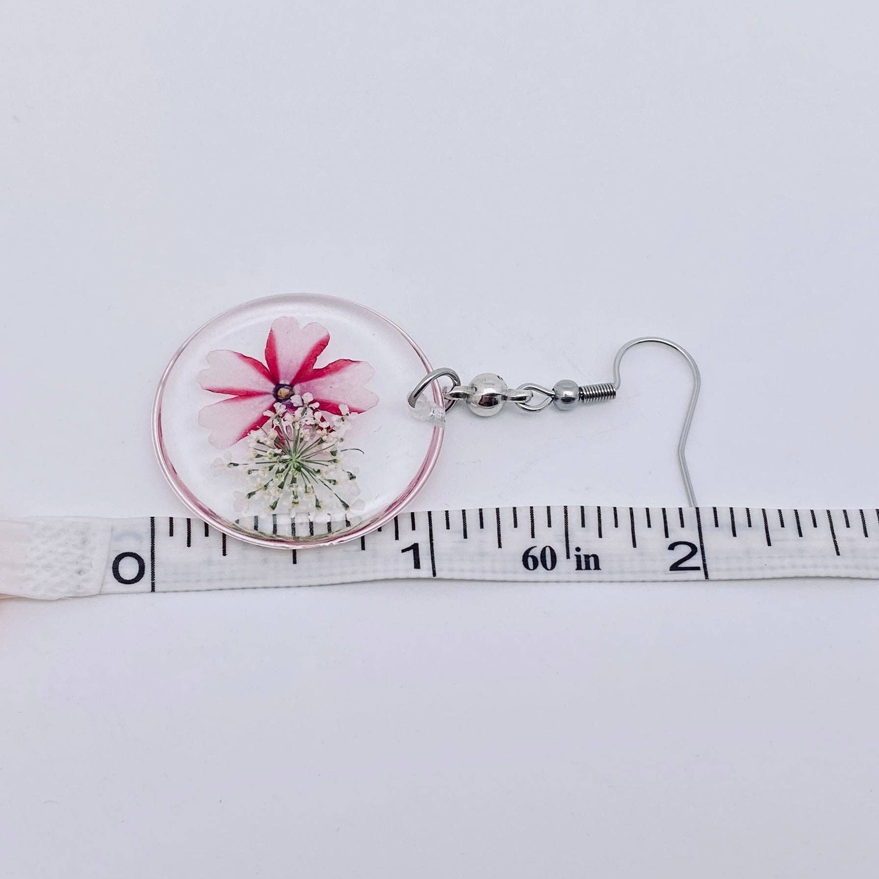 Material: Dried flowers, resin, stainless steel hook